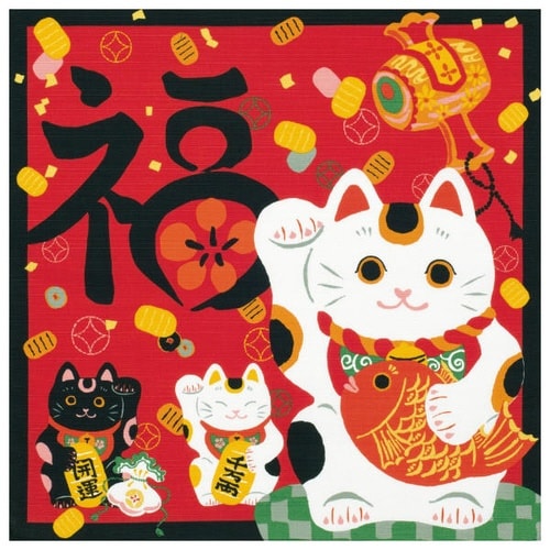 縁起の良い招き猫がデザインされた風呂敷です。 使いやすさにこだわった綿素材です。 50cmの風呂敷なのでお弁当を包んだり、キッチンクロスやランチョンマット、ハンカチにもお使い頂けます。 |