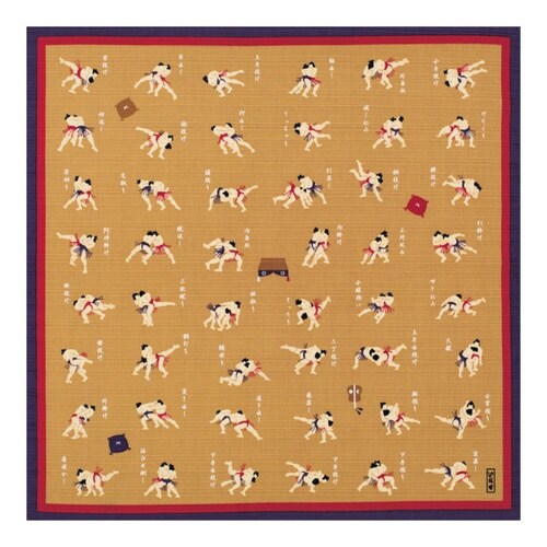 相撲の決まり手が描かれた小風呂敷です。 使いやすさにこだわった綿素材です。 お弁当を包んだり、キッチンクロスやランチョンマット、ハンカチなど様々な使い方ができます。 |