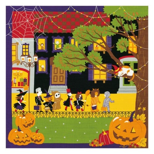 三毛猫のみけと過ごす日本の四季を描いた風呂敷シリーズの「みけのハロウィン」です。 お昼寝好きのみけは一体どんな夢を見ているのでしょう。 |