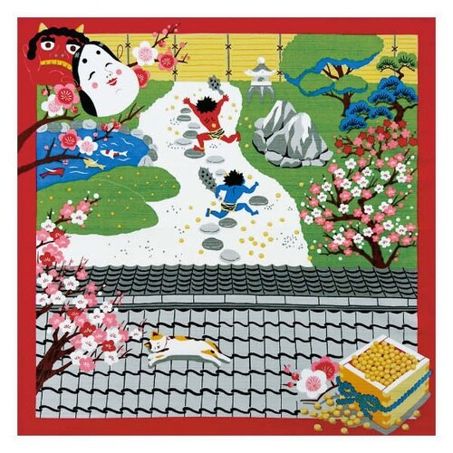風呂敷 ランチクロス お弁当 50cm 中巾 三毛猫みけの夢日記 小ふろしき みけの節分