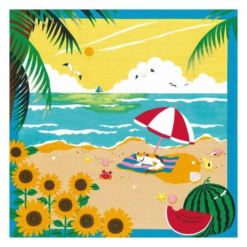 三毛猫のみけと過ごす日本の四季を描いた風呂敷シリーズの「みけの夏休み」です。 お昼寝好きのみけは一体どんな夢を見ているのでしょう。 |
