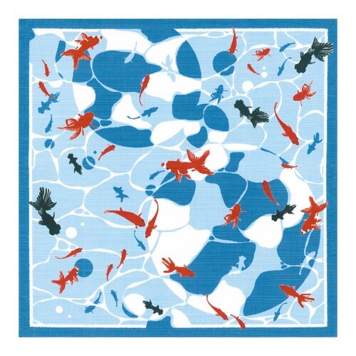 揺れる水面の下を金魚が泳ぐ、夏らしい柄の風呂敷です。 お弁当やランチョンマットはもちろん、包み方次第でギフトを包んだりティッシュカバーとしてもお使いいただけます。 |