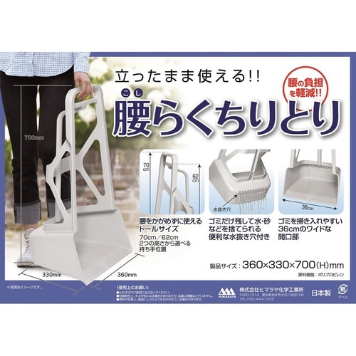立ったまま使えて、腰の負担を軽減できる便利なちりとりです。 70cm/62cmの2つの高さから選べる持ち手位置で、かがまずに使えるトールサイズです。 |