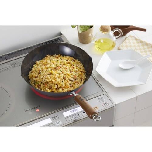 サビにくい窒化加工を施した鉄フライパン(炒め鍋)です。 使用前の「空焼き」、使用後の「油引き」が不要で、使いやすさが魅力です。 油ならしを済ませたらすぐにお使いいただけます。 |