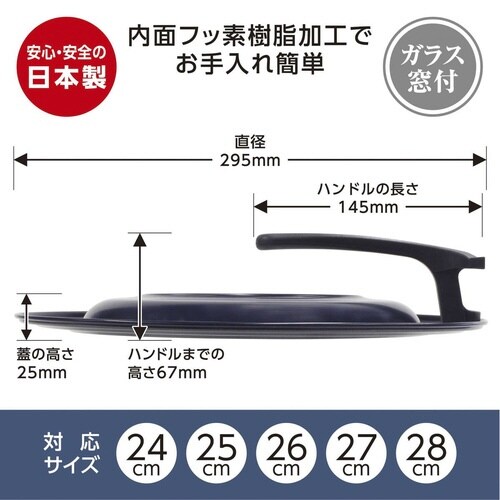 竹原製缶 フライパン 蓋 L 24から28cm リグランテ スタンドパンカバー 日本製 ネイビー 9339-1184