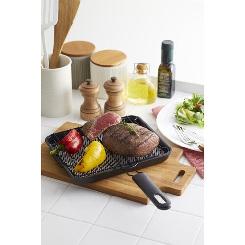 食材の焼き加減を見ながら調理できる焼き網です。 魚や大きめのお肉などもひっくり返しやすいストレート網です。 余分な脂が受け皿に落ちて、美味しくヘルシーに焼き上げます。