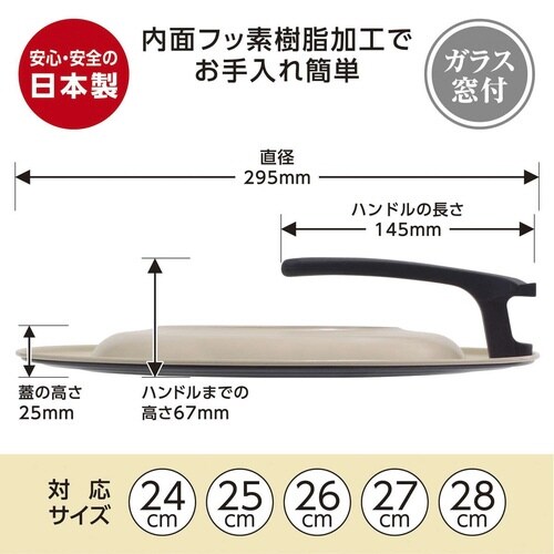 本体:鋼板(内外面フッ素樹脂塗膜加工) ハンドル:フェノール樹脂 ガラス:全面物理強化ガラス