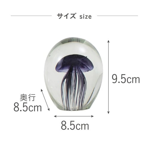 クラゲが浮遊している様なデザインのガラスオブジェです。 光の反射によって様々な表情が楽しめます。 玄関やリビングなどのお部屋のデコレーションにおすすめです。 ペーパーウェイトにも使用できます。 |