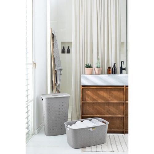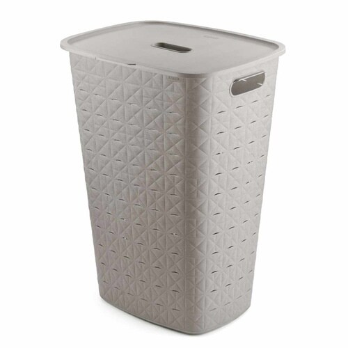 ランドリーバスケット CURVER ソフテックス フタ付き 56L グレーベージュ