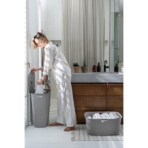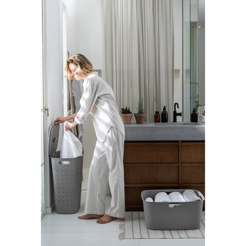実用性とデザイン性を兼ね備えた「Softex(ソフテックス)」シリーズのフタ付きランドリーバスケットです。 樹脂素材なので、柔らかく心地よい感触です。 |