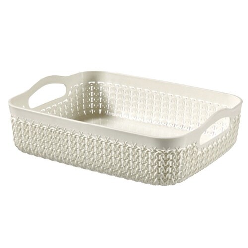 手編みのニットのような複雑な編み目を施したバスケット。上質な雰囲気で通気性がよく水や汚れに強いポリプロピレン製。 |
