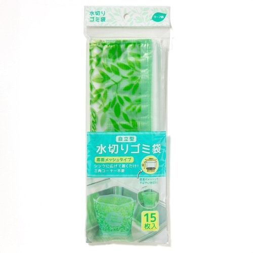 自立型水切りごみ袋 リーフ柄 15枚入