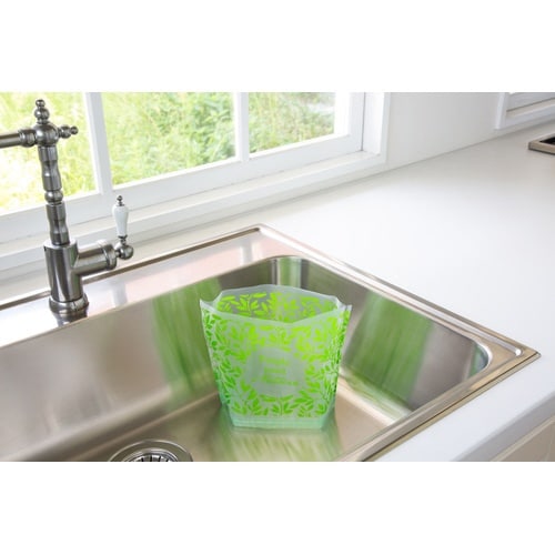三角コーナーがいらない自立する水切り袋。シンクに広げて置くだけ!底面がメッシュとなっているので、すばやい水切れと小さなゴミを逃しません。 |