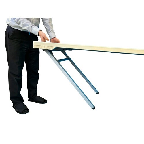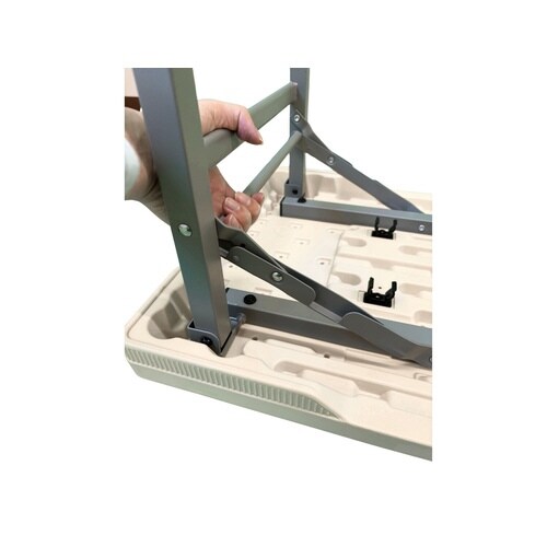 折りたたんで積み重ねができるスタック機能付き。水に強く軽量な樹脂テーブル。ロック機能付き。 |