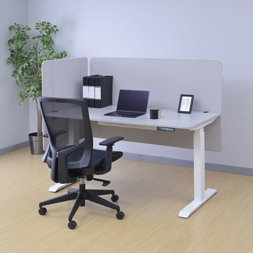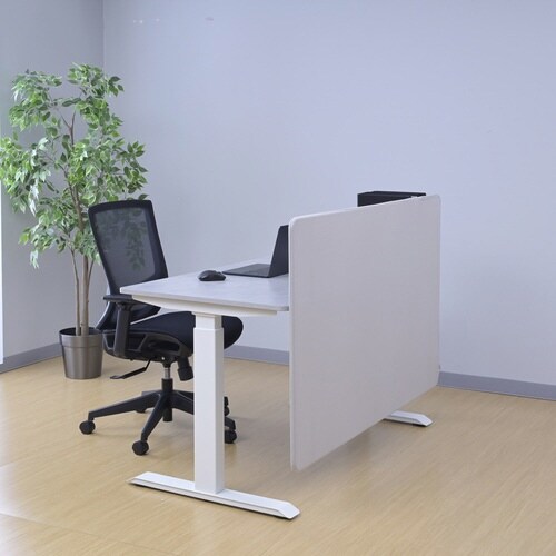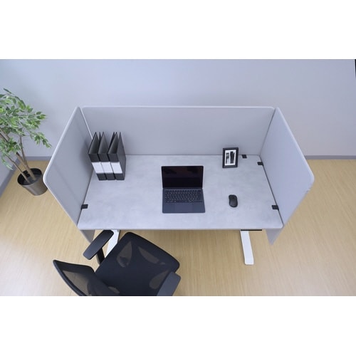 挟み込むだけで簡単取付クランプ式のデスクパネル。300mmと500mmの高さ2段階調節可能。布カバーは外して、洗濯ができます。 |