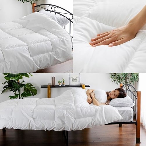 防ダニ・抗菌防臭機能のある機能綿を使用した洗える掛け布団。便利な収納袋付。 |