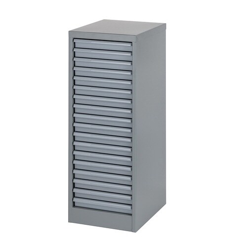 アバンテV2フロアケースカラートレータイプ アッシュグレー 浅18段。中身が見えないカラー引出しでスマートに。本体は高級感を演出するマット調の新色塗装。 |