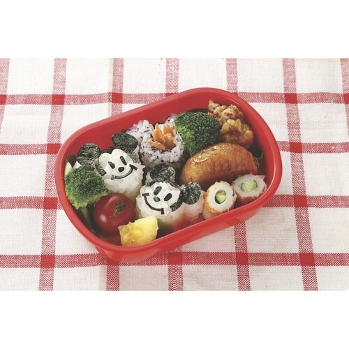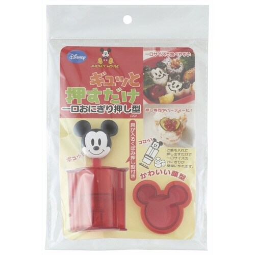 ご飯を入れて押し出すだけで、かわいいミッキーの顔型の一口サイズおにぎりが作れます。 おにぎりの大きさは、ミッキーの耳の部分も入れて大体4cm角です |