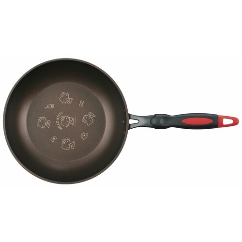 ハローキティのフライパン26cmです。 内側にダイヤモンドコーティングが施されており、食材がくっつきにくく、お手入れが簡単にしていただけます |