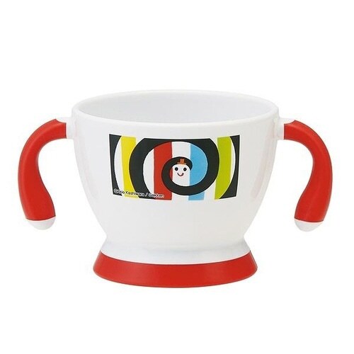 持ち手が手前に曲がっているので小さなお子様でも持ちやすいく扱いやすいです。 底が大きめなので安定して置くことができ倒れにくいです。 持ち手と底部分は滑りにくいソフト素材になっています |