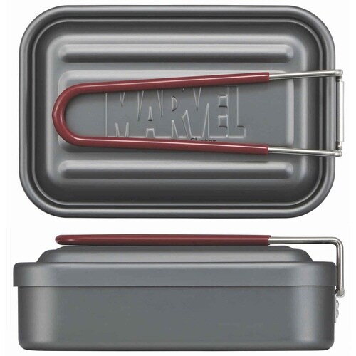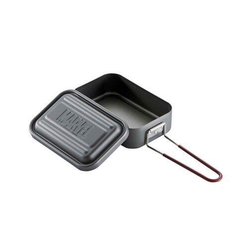 バーベキューやキャンプなどのアウトドアで大活躍するアルミ製メスティン(600ml)です。 MARVELのロゴが刻印されています。 ハンドル付きなので、調理器具として様々な料理が作れます |