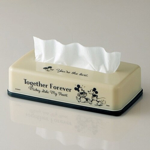 ソフトパックのティッシュを収納できるティッシュケースです。 ソフトパックのティッシュペーパーを約1個収納できます。 レトロなデザインのミッキーとミニーが描かれていてインテリアにも馴染みやすいです |