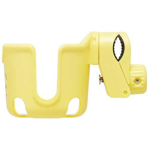 ベビーカーのハンドル上部やサイドフレーム(直径1.5から3cm幅)に取り付けできるプーさんのドリンクホルダーです。 両手マグやボトル(直径約8cmまでのもの)が入ります |