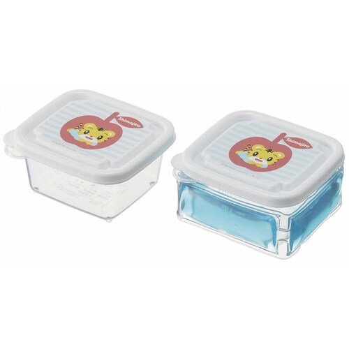 しまじろうがデザインされた離乳食ケースです。 容器に巻き付けて食材を冷ます保冷剤が1つ付いています。 フタを外すと、電子レンジの使用が可能です |