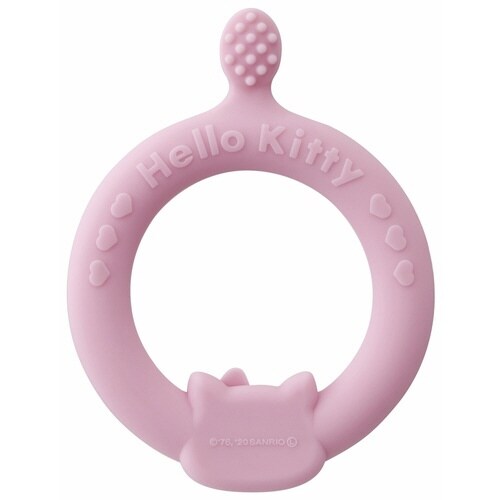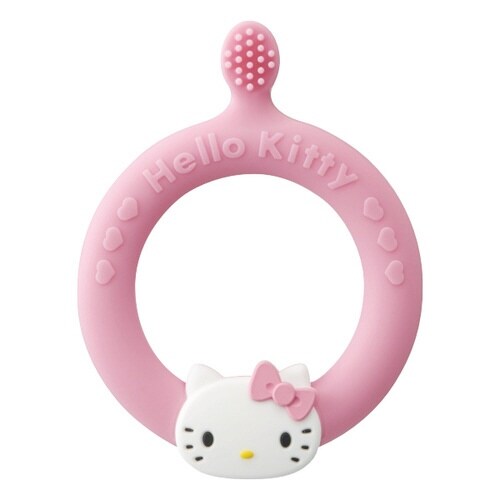初めての歯ブラシにピッタリなキティちゃんの乳歯用歯ブラシです。 お子様の小さな手でも握りやすいループ型です。 やわらかいシリコーンで歯茎をやさしく刺激してくれます |