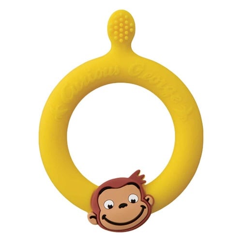 初めての歯ブラシにピッタリな「おさるのジョージ」の乳歯用歯ブラシです。 お子様の小さな手でも握りやすいループ型です。 やわらかいシリコーンで歯茎をやさしく刺激してくれます |