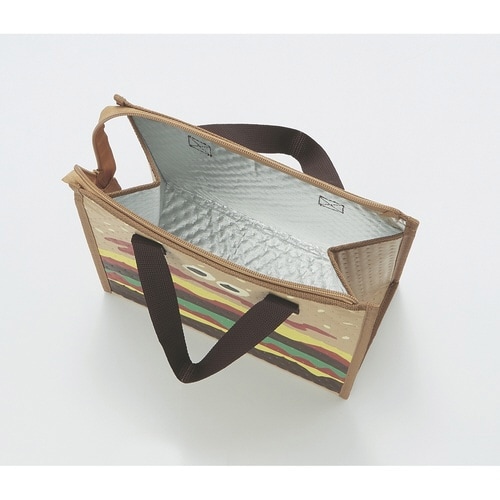 バーガーコンクスの保冷バッグです。 お弁当箱とマイボトルが一緒に入る便利なサイズです。 マチ幅が約13cmで少し大きめのランチバッグです。 外気からのバリア性が高く保冷効果抜群です |