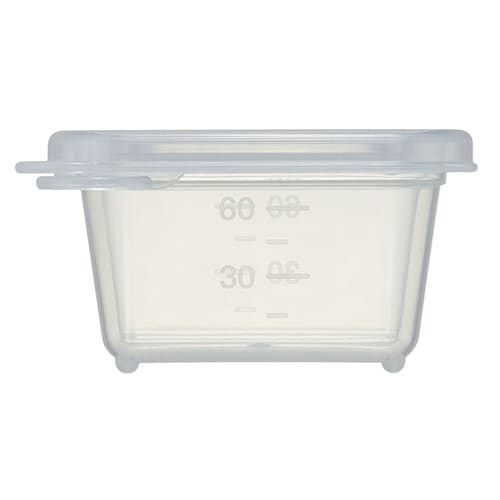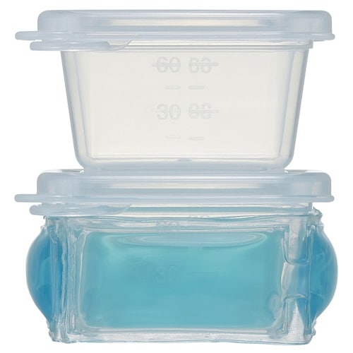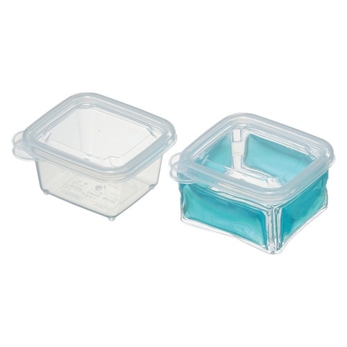 シンプルデザインで使いやすい離乳食ケースです。 離乳食の作り置きやおかずなどの小分け保存に便利です。 容器に巻き付けて食材を冷ます保冷剤が1つ付いています。 フタを外すと、電子レンジの使用が可能です |