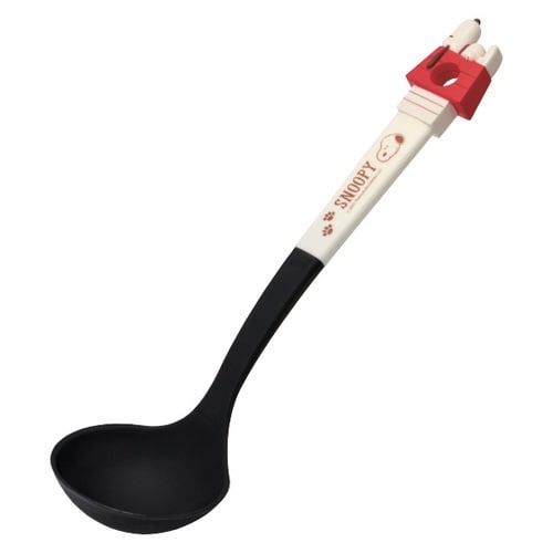 可愛いスヌーピーのお玉です。 食材をかきまぜたり、味噌汁やスープ等をすくう、注ぐのに便利です。 鍋などの表面をキズつけにくいナイロン樹脂製です。 持ち手の先端に穴が開いているので、掛けて収納できます |