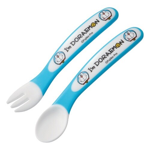 ドラえもんのベビー用スプーンフォークセットです。 小さな手でも握りやすい太めグリップとカーブ形状です。 グリップには柔らかくて滑りにくい素材を使用しています |