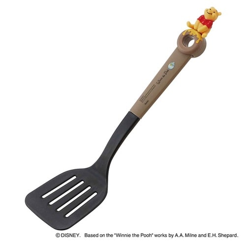 可愛いくまのプーさんの穴あきターナー(フライ返し)です。 軽々使えて持ちやすいミニサイズ、お子さま用にピッタリです。 穴あき仕様なので、余分な水分や油を落とすことができます |