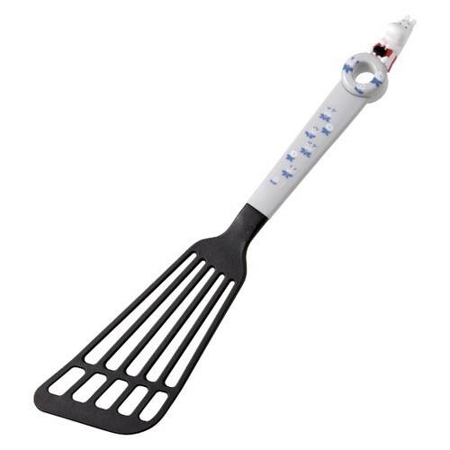 ムーミンママが持ち手についている、食材の返しに便利なビーターです。 フライパン、鍋等の表面をキズつけにくいナイロン樹脂製です。 持ち手の先端に穴が開いているので、掛けて収納できます |