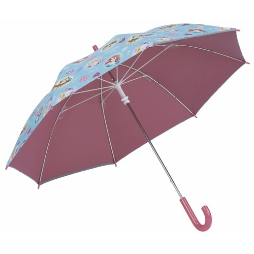 傘 子供用 晴雨兼用 手開き 50cm 反射テープ付き キャラクター ディズニープリンセス