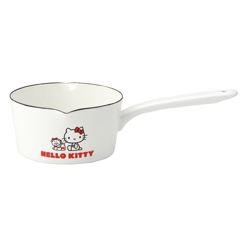 ハローキティの柄がかわいいホーロー製のミルクパンです。 熱効率の良いホーロー製ミルクパンは、お湯が早く沸きます。 表面はガラス質で臭いが移りにくいので、清潔かつ衛生的です |
