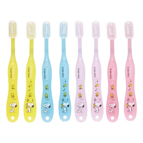 スヌーピーの3から5才用の園児用歯ブラシです。 ストックに便利な8本セットです。 1本ずつに歯ブラシキャップが付いています。 1本1本個包装しているので清潔に保管できます |