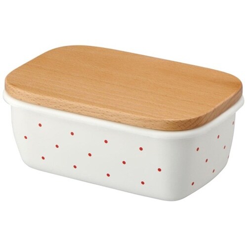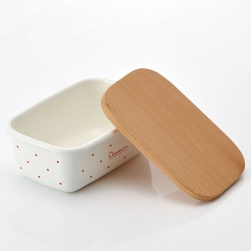 バターケース ホーロー 木蓋付き キャスミン アイボリー