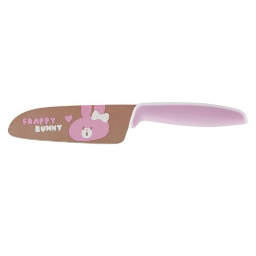フラッピーバニーの絵柄が描かれたこども包丁です。 安全のため刃先と角を丁寧に丸めています。 小振りの刃で小さなお子様にも扱いやすいです |