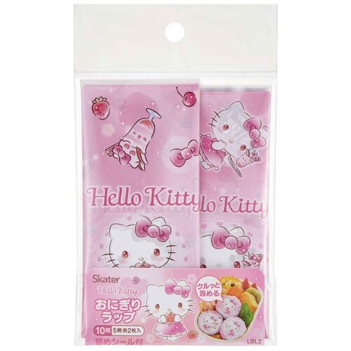 ハローキティのおにぎりラップです。 お得な10枚入りです。 おにぎりをシートで包むだけで簡単にキャラクター弁当ができます。 留めシール付きです |