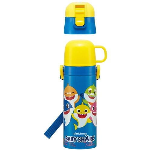 水筒 キッズ 470ml 2way 直飲み コップ ステンレス ベイビーシャーク
