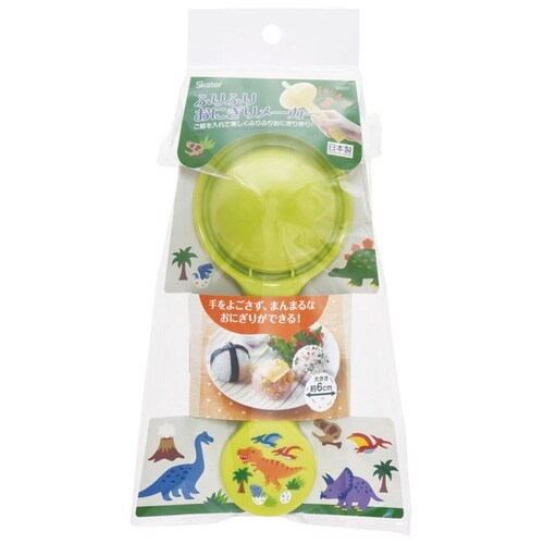 ディノサウルスのおにぎりメーカーです。 ご飯を入れて振るだけで簡単に丸いおにぎりが作れます。 ご飯を入れた容器をパチンと音がするまで閉めて、マラカスを振るように振ります。 手が汚れないので便利です |