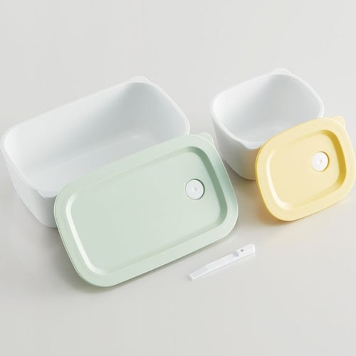 お弁当箱 680ml 冷凍作り置き システムコンテナ ランチセット くすみGRN×YEL