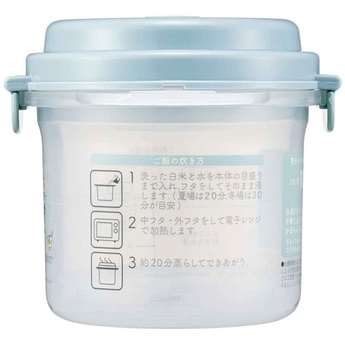 電子レンジでご飯がふっくら炊ける、一合炊き用ご飯調理容器です。 本体には見やすい目盛り入りなのでお子様でも簡単に炊くことができます。 くっつかない加工のミニしゃもじ付きです |