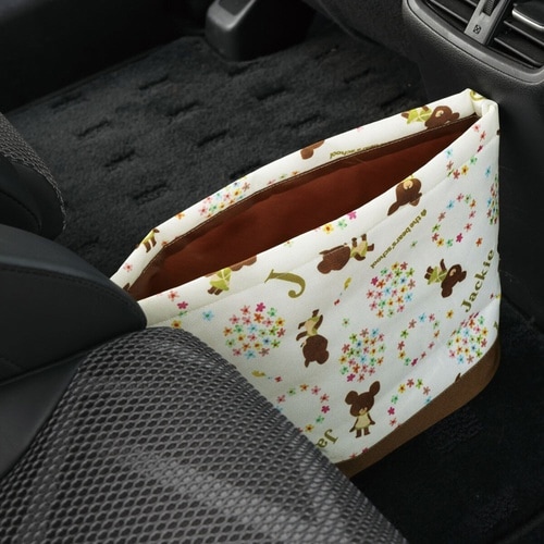 車内のゴミを入れるのに最適なキャラクターのダストボックスです。 車内の小物整理にもおすすめです。 底面はフロアマットの起毛に張り付く面ファスナー付きなので、固定しやすく、倒れにくいです |
