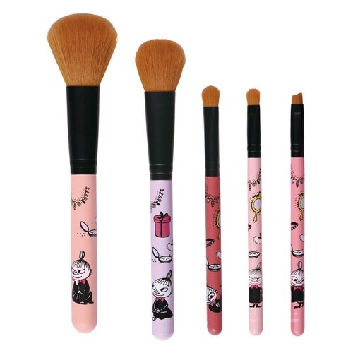 持ち手に可愛いキャラクターのデザインが入った化粧筆5本セットです。 日常のお化粧に欠かせないパウダーブラシ、チークブラシ、アイシャドウブラシM、アイシャドウブラシS、アイブロウブラシのセットです |