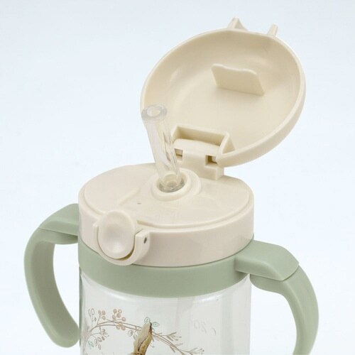 小さなお子様がストローで飲む練習ができるストローマグです。 ボタンを押すとワンタッチで開閉できるので衛生的です。 割れにくく透明度の高いPET素材を使用しています |