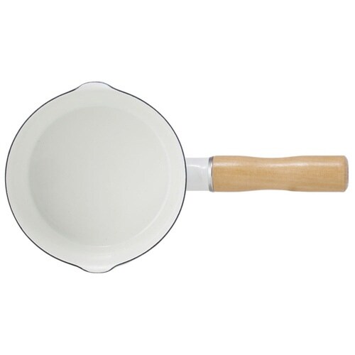 少量の調理にちょうど良い両口ミルクパンです。 熱伝導に優れたホーロー製で、ガス火でもIH調理でもお湯が早く沸きます。 両側から注げるので利き手に関係なく使えます |